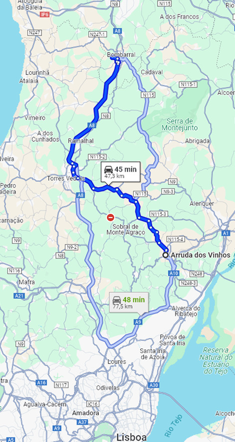 De Arruda dos Vinhos a Pataias ficamos a saber que o centro do Oeste é sensivelmente no Bombarral. Ora Arruda dos Vinhos está a 15min do seu hospital de referência (Vila Franca de Xira). No entanto é apresentado que irá fazer 45 min para esta nova unidade. O mesmo acontece com a maior parte da população do concelho de Alenquer.