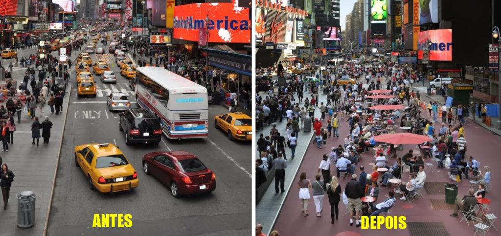 Para aqueles que acham que a conversão de ruas com transito automóvel, para ruas pedonais é um erro, vou apresentar apenas um exemplo: a conhecida e famosa Times Square, em Nova York, foi alvo de um processo de conversão para zona pedonal, que se tornou um dos mais conhecidos no mundo. Iniciado em 2009, como projeto piloto, o encerramento desta importante via ao transito automóvel, provocou um aumento de 71% no volume de negócios das empresas situadas na Times Square, o que deixou claro que a conversão em zona pedonal deveria de se tornar definitiva. (nota A)
